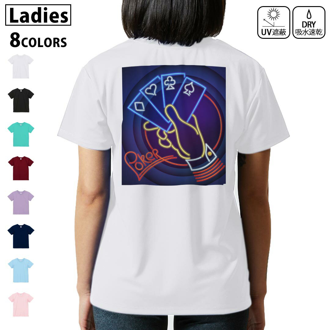 ドライ Tシャツ バックプリント 選べる8カラー tシャツ レディース 半袖 速乾 紫外線遮蔽 UV デザイン 2サイズ Tシャツ ティーシャツ T shirt 007414 トランプ ネオン ポーカー カジノ