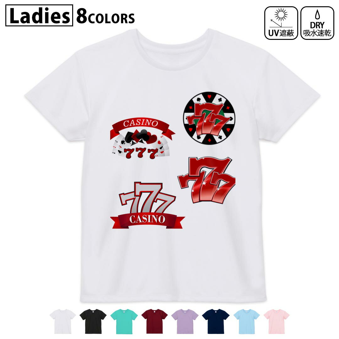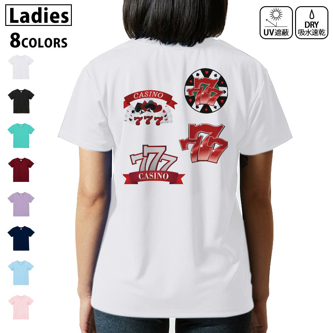 ドライ Tシャツ バックプリント 選べる8カラー tシャツ レディース 半袖 速乾 紫外線遮蔽 UV デザイン 2サイズ Tシャツ ティーシャツ T shirt 008919 赤 レッド カジノ スロット