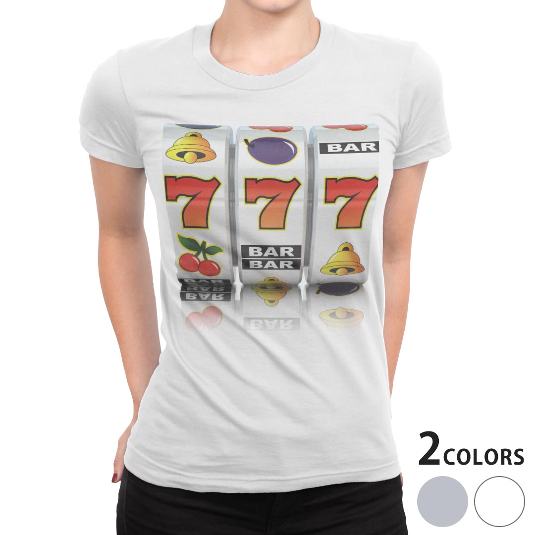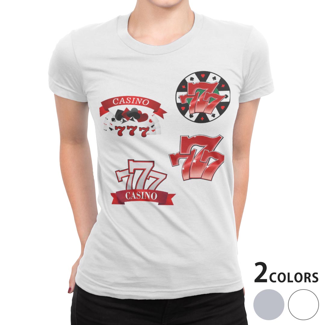 tシャツ レディース 半袖 白地 デザイン M L 白 ホワイト グレー Tシャツ ティーシャツ T shirt 008919 ユニーク 赤 レッド カジノ スロット
