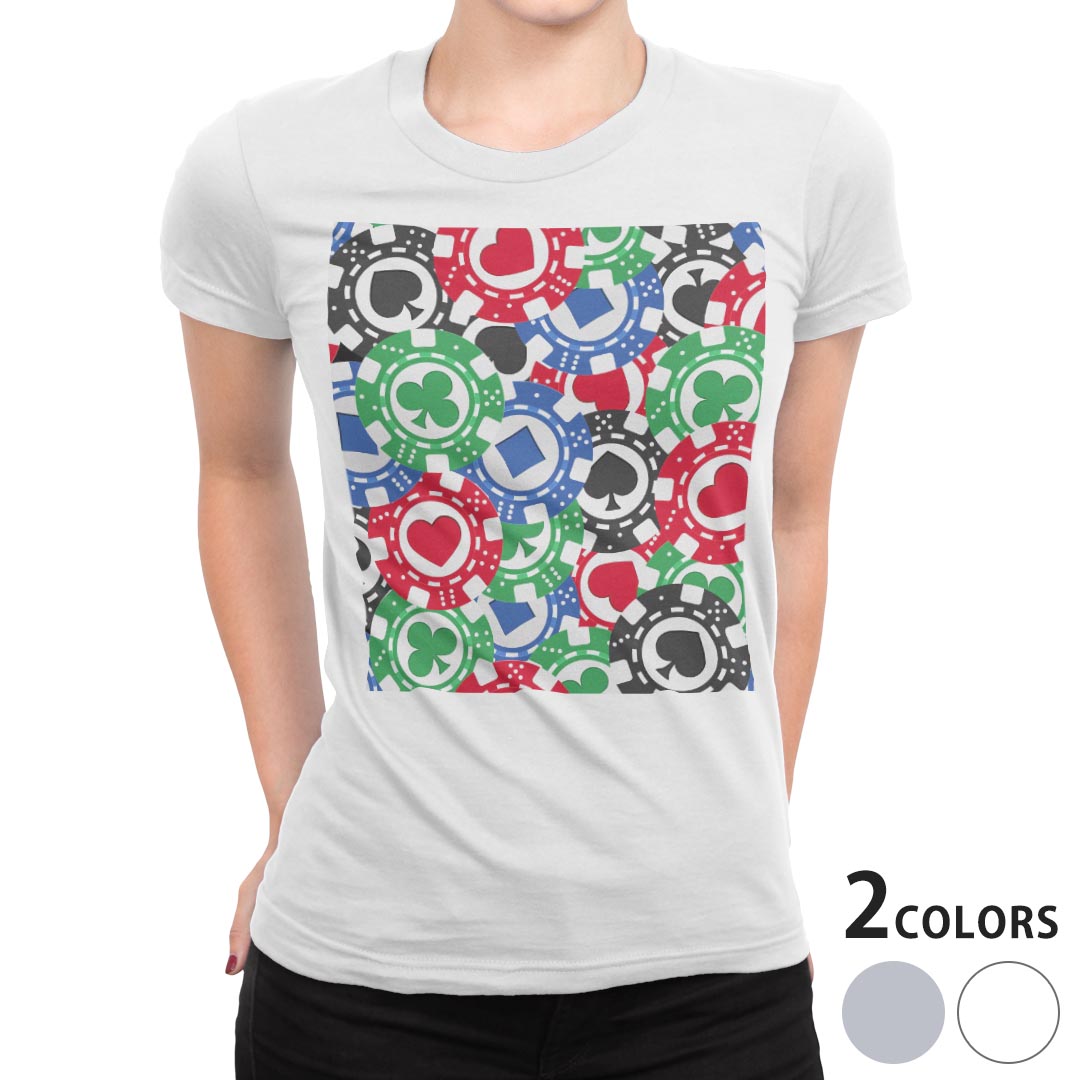 tシャツ レディース 半袖 白地 デザイン M L 白 ホワイト グレー Tシャツ ティーシャツ T shirt 008743 ユニーク チップ トランプ カジノ