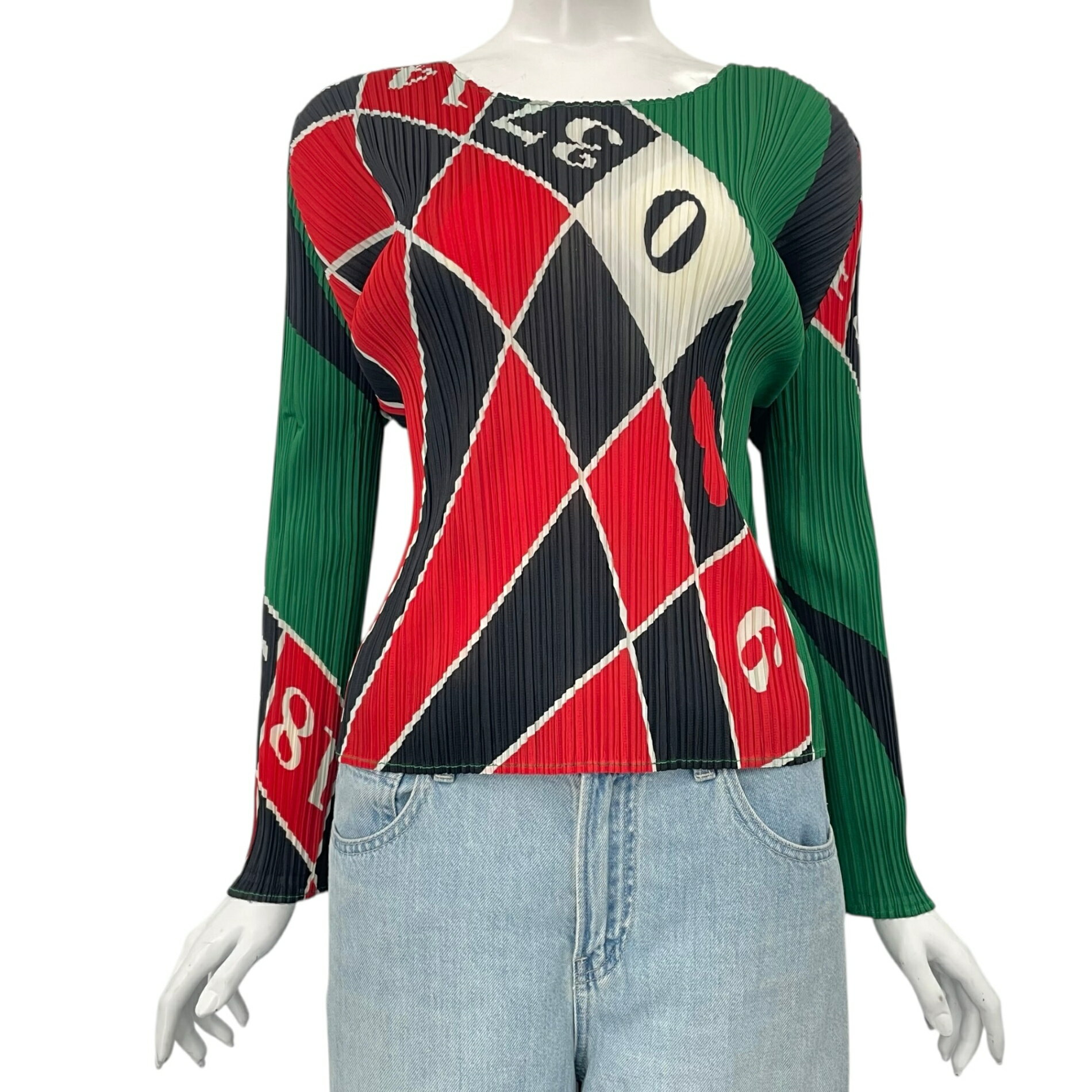 新品同様 ISSEY MIYAKE イッセイミヤケ PLEATS PLEASE プリーツプリーズ カットソー トップス カジノ柄 ルーレ グリーン ブラック サイズ3