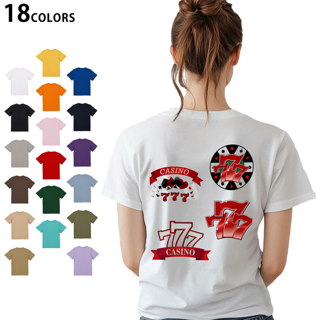 選べる18カラー Tシャツ レディース 半袖 ホワイト グレー デザイン M L Tシャツ ティーシャツ T shirt 008919 赤 レッド カジノ スロット