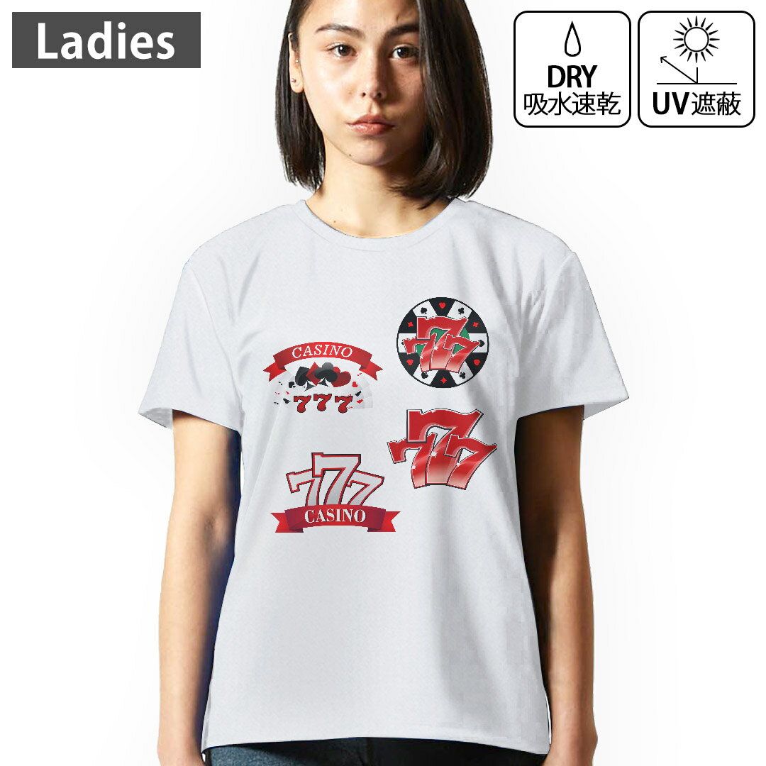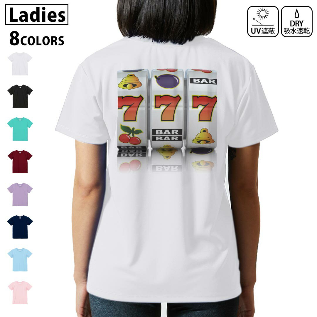 ドライ Tシャツ バックプリント 選べる8カラー tシャツ レディース 半袖 速乾 紫外線遮蔽 UV デザイン 2サイズ Tシャツ ティーシャツ T shirt 008613 スロット カジノ 赤 レッド