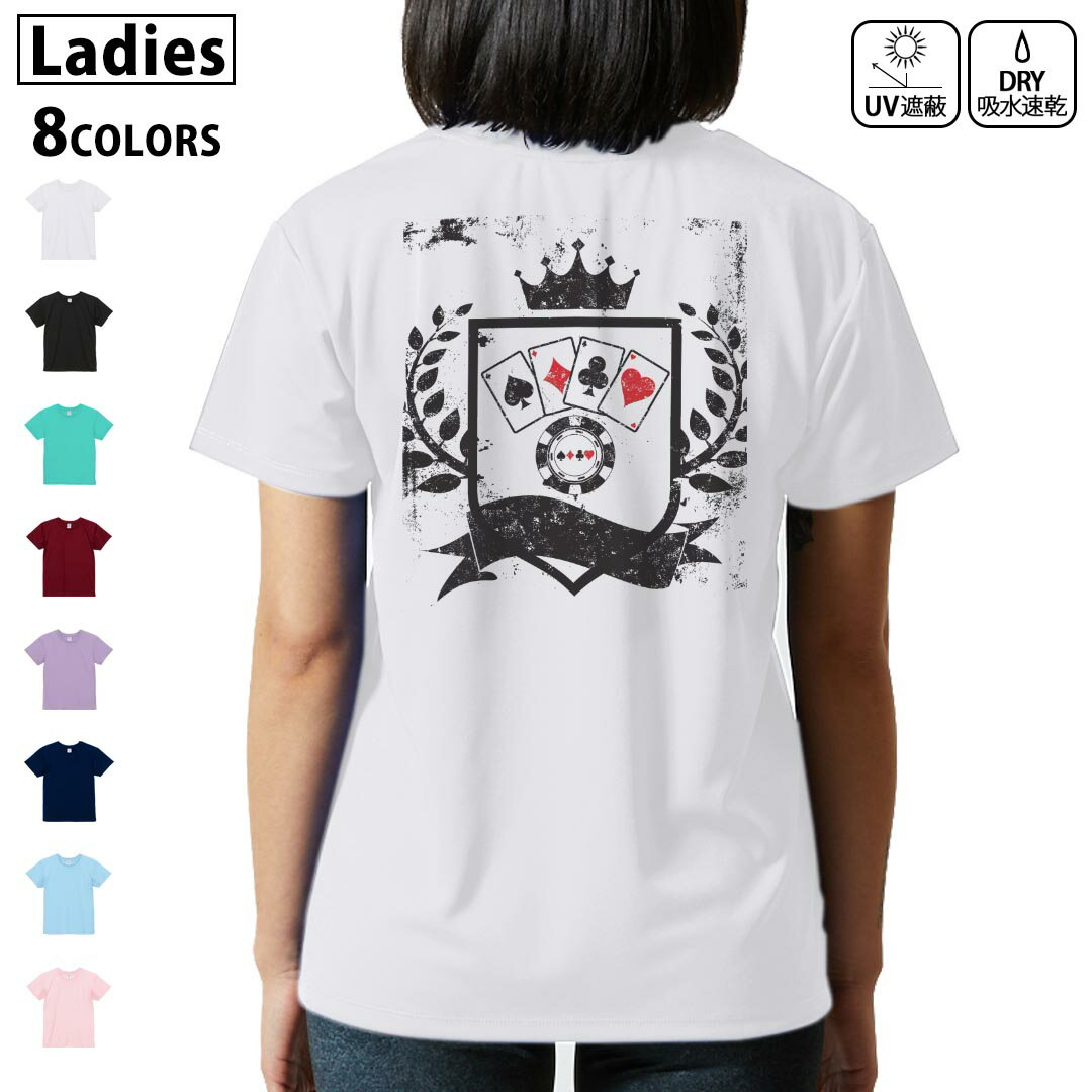 ドライ Tシャツ バックプリント 選べる8カラー tシャツ レディース 半袖 速乾 紫外線遮蔽 UV デザイン 2サイズ Tシャツ ティーシャツ T shirt 008885 モノトーン トランプ カジノ