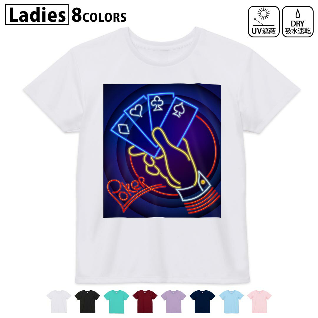 ドライTシャツ 吸水 速乾 DRY 選べる8カラー tシャツ レディース スポーツ ゆったり UV対策 デザイン M L Tシャツ ティーシャツ T shirt007414 トランプ ネオン ポーカー カジノ