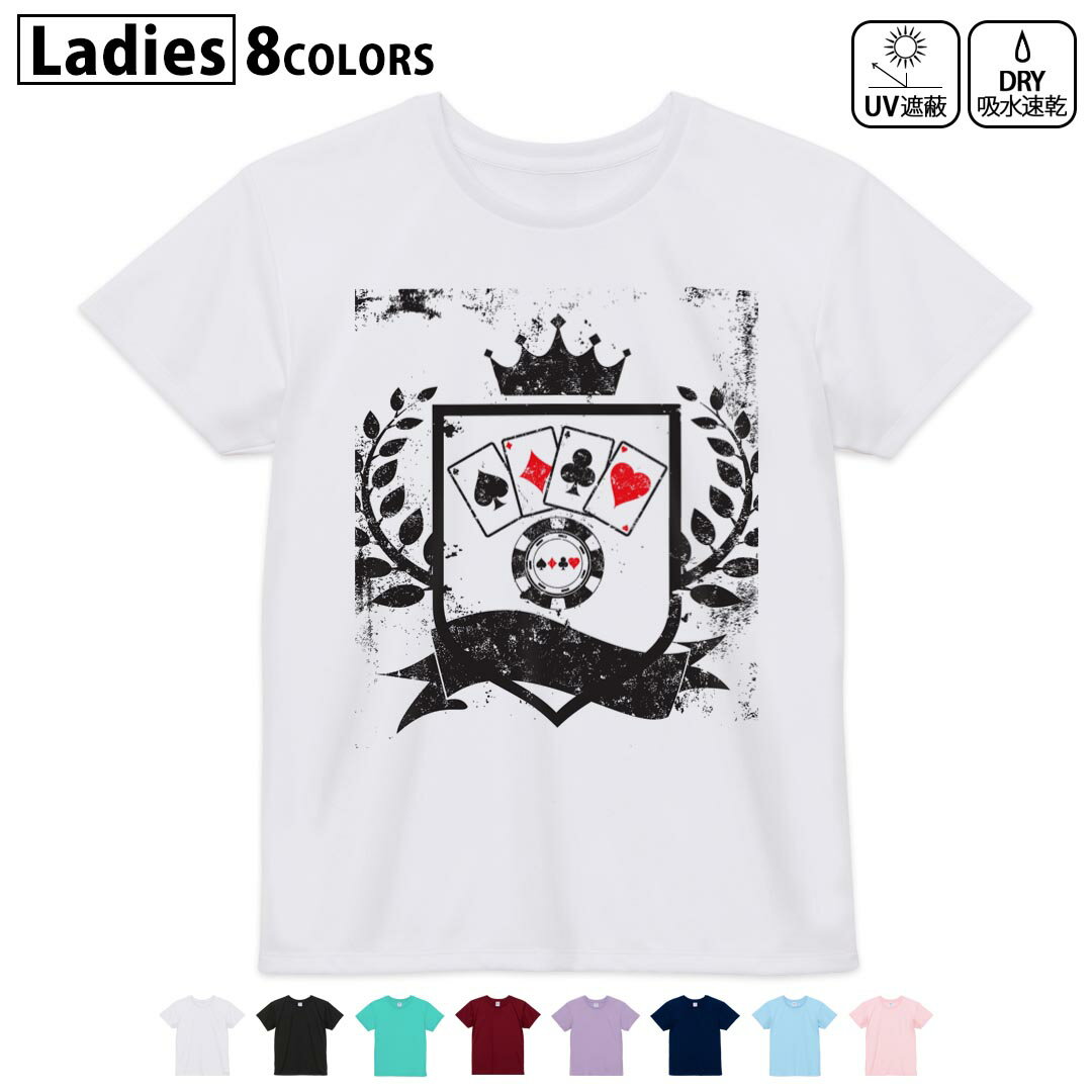 ドライTシャツ 吸水 速乾 DRY 選べる8カラー tシャツ レディース スポーツ ゆったり UV対策 デザイン M L Tシャツ ティーシャツ T shirt008885 モノトーン トランプ カジノ