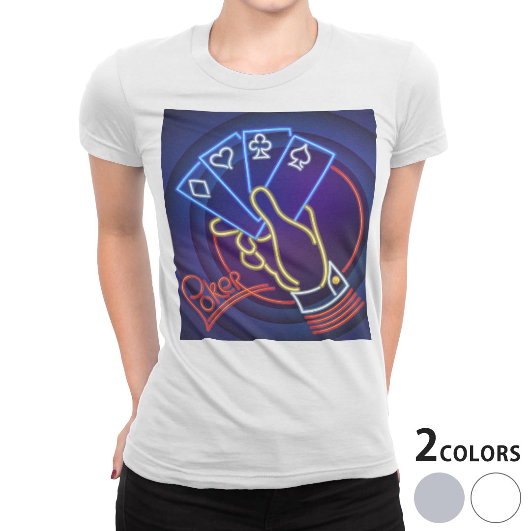 tシャツ レディース 半袖 白地 デザイン M L 白 ホワイト グレー Tシャツ ティーシャツ T shirt 007414 その他 トランプ ネオン ポーカー カジノ