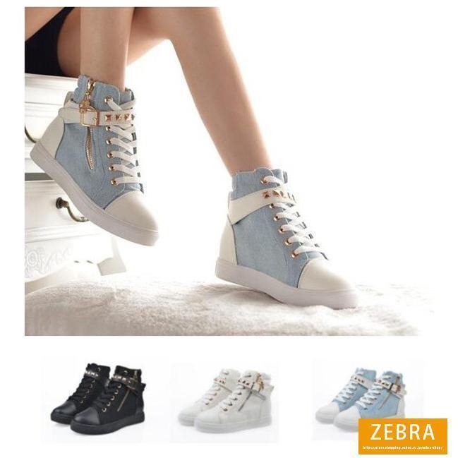 スニーカー デニム スタッズ 白 レディース 夏春 ハイカット ローヒール カジュアルシューズ 厚底スニーカー スポーツシューズ 厚底 レースアップ キャンバス