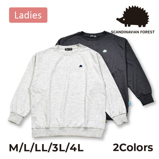 SCANDINAVIAN FOREST(スカンジナビアンフォレスト) レディース 裏毛トレーナー スウェット ハリネズミ ワッペン かわいい オールシーズン