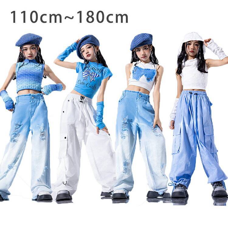 【2wayで穿けるヒップホップ ダンスパンツ デニム ワイドパンツ レディース ブルー ボトムス ダンス衣装 女の子 K-POP かっこいい ダンスウェア ハイウエスト チアダンス 韓国ファッション ヒップホップ セクシー 普段着 演出服 団体服 発表会 XS S M L XL 送料無料