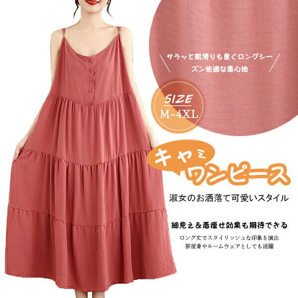 キャミ キャミワンピース キャミソール ケーキワンピース ケーキ シャツワンピース レディース ロングワンピース ゆったり 体型カバー 肩出し レトロ ヴィンテージ かぶるタイプ レイヤード 重ね着入り 重ね着 大きいめ ノースリーブ 着回し 通気性 エレガント オシャレ