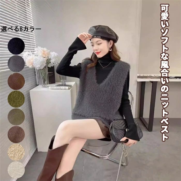 ベスト ニットベスト ニット ニットチョッキ シャギー レイヤード レディース 秋冬 シャギーニット シャギーベスト ジレ Vネック