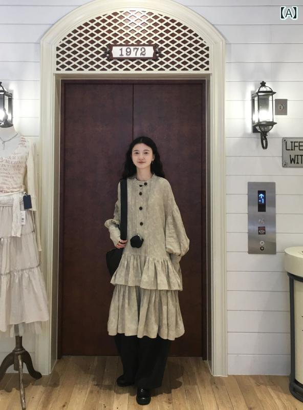 フリル ショート ドレス レディース チャイナ風 フリル ツーピース ドレス 春秋 侘び 寂 び ゆったり ふわふわ ケーキ シャツ