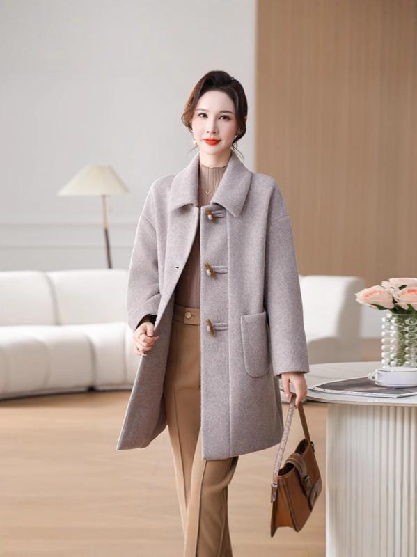 ・カテゴリ: 女性ウールコート・スタイル: カジュアル・主な素材: ウール30%以下・柄: 無地・厚み: 厚手・シルエット: ゆったり・着丈: 中長65-80cm・襟型: ラペル・袖丈: 長袖・袖型: ストレート・装飾: ポケット・フロント: シングルブレスト・カラー展開: グレー、カーキ、シャンパンイエロー・サイズ展開: L、XL、XXL、XXXL、XXXXL・性別: 女性