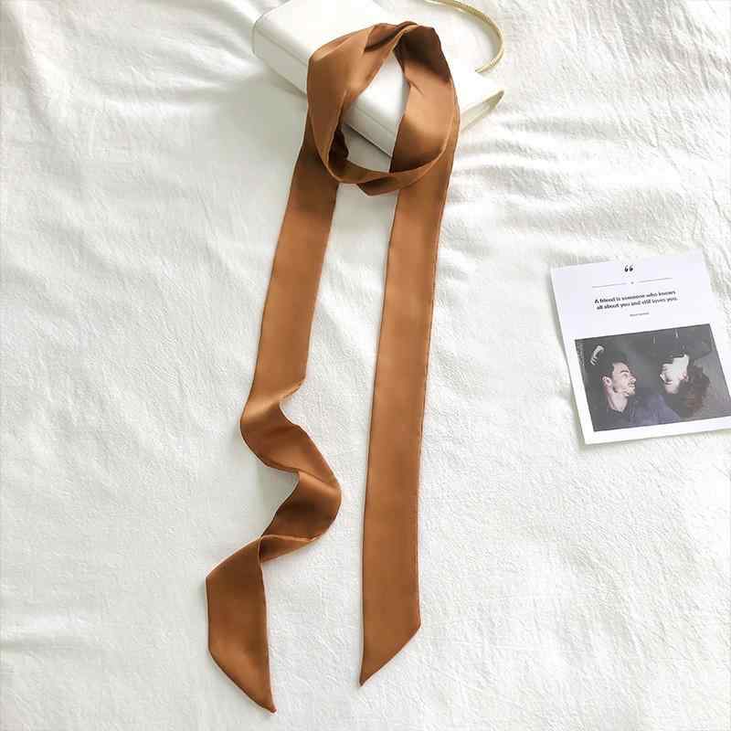 スカーフ 細スカーフ バッグ飾り ヘアバンド シルク調 接触冷感 無地 紫色 銀色 黄緑色 肌色 オレンジ ピンク系 レッド ブルー ブラック ダークブラウン グリーン エメラルドグリーン カーキ シャンパン色 秋香緑 オフホワイト ローズレッド イエロ