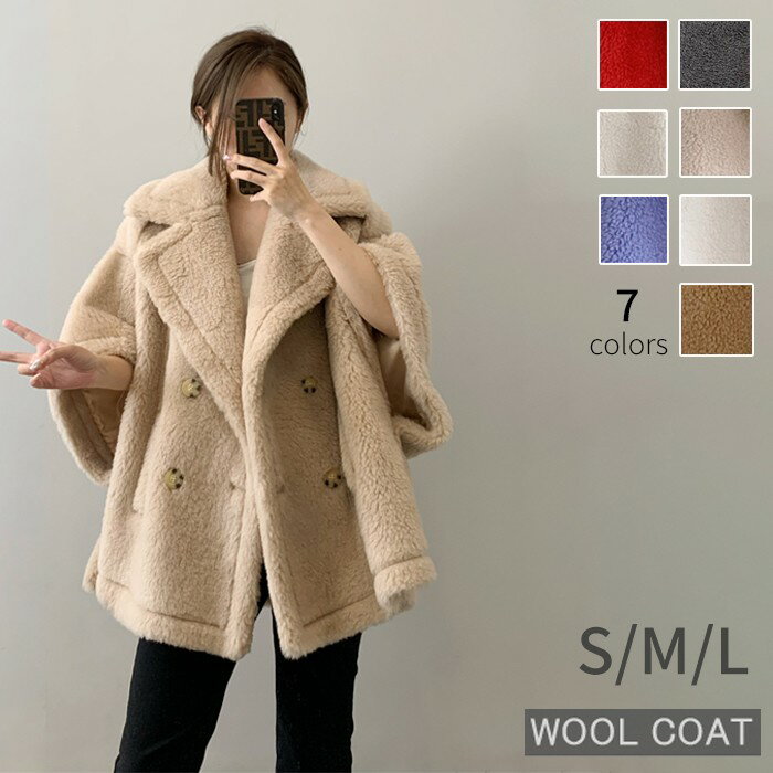テディベアポンチョコート ポンチョ コート テディコート ウール レディース アウター ショート丈 ショートコート おしゃれ 冬 ポケット付 もこもこボアビッグ ファーコート きれいめ 秋服 冬服 あったか 暖か 防寒 秋冬 春 秋 ウールコート md026d7d7m4