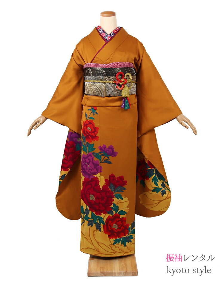 振袖レンタル セット 黄色 からし オレンジ 山吹色 [貸衣装 貸衣裳][成人式 振袖][結婚式 振袖][卒業式 レンタル][結納][レンタル 振袖][着物 レンタル] 振袖 レンタル 成人式 柄少なめ クラシカル おしゃれ レトロ アンティーク調 72192【往復送料無料】【レンタル】