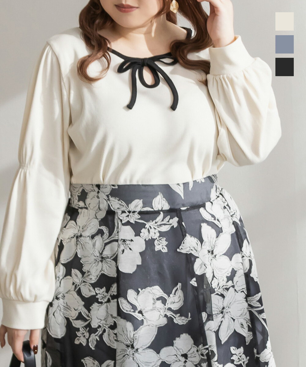 大きいサイズ レディース CLETTEオリジナル★配色リボン使いリブプルオーバー 【LLサイズ・3Lサイズ・4Lサイズ】【大きいサイズ・レディース】13号・15号・17号・19号・21号・23号