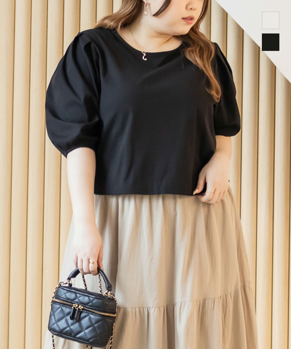 大きいサイズ レディース ランタンスリーブストレッチカットプルオーバー 【LLサイズ・3Lサイズ・4Lサイズ】【大きいサイズ・レディース】13号・15号・17号・19号・21号・23号