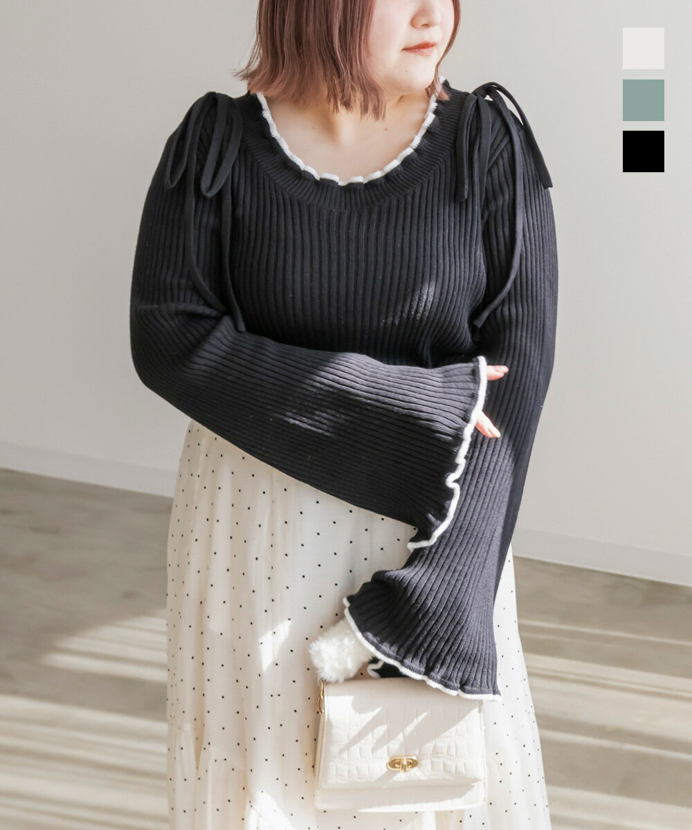 大きいサイズ レディース CLETTEオリジナル★配色使いリボン付きリブニット 【LLサイズ・3Lサイズ・4Lサイズ】【大きいサイズ・レディース】13号・15号・17号・19号・21号・23号
