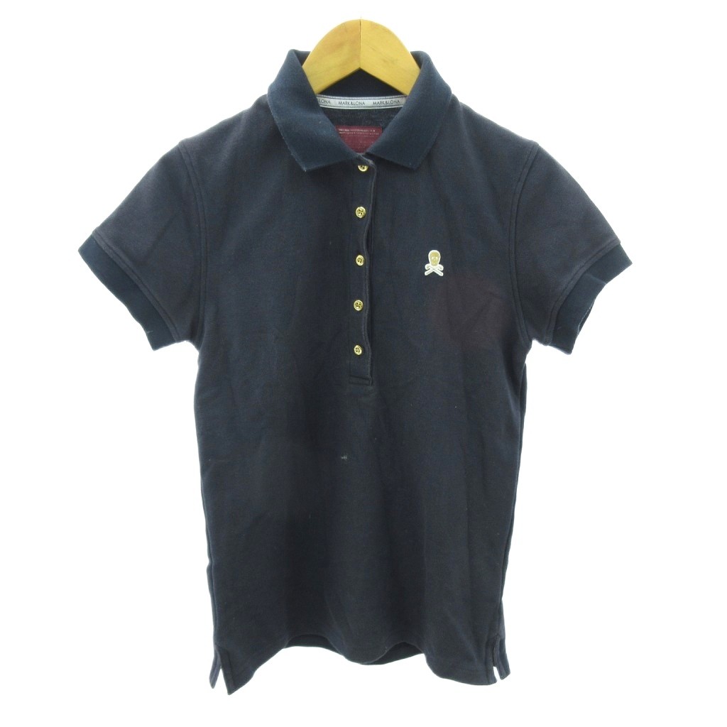 【中古】マーク&ロナ MARK&LONA ポロシャツ ドクロ ロゴ 刺繍 金釦 半袖 S 紺 ネイビー 1012 ■YHS6 レディース 【ベクトル 古着】 251012