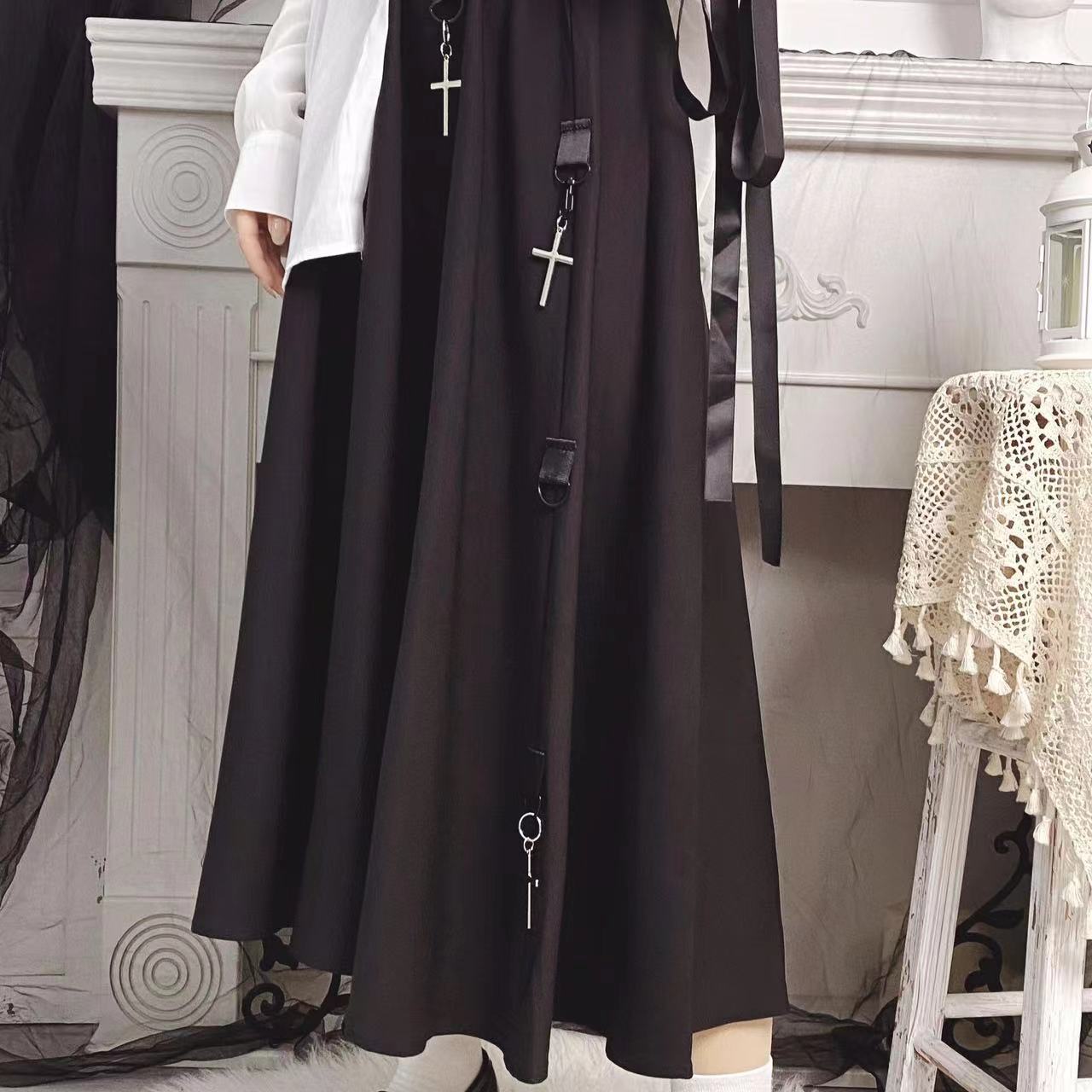 【送料無料】タックスカート マキシ丈 モノクロ ロリータ ゴスロリ レディース モード系 原宿系 ストリート系 ファッション エストール