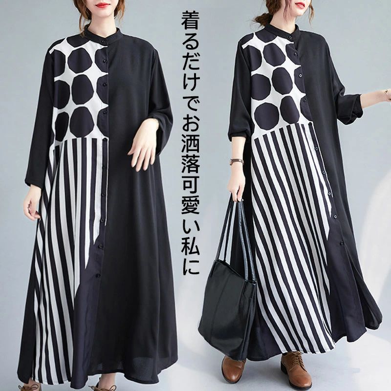 モノクロ ロングシャツ ロングワン レディース 送料無料 全二色