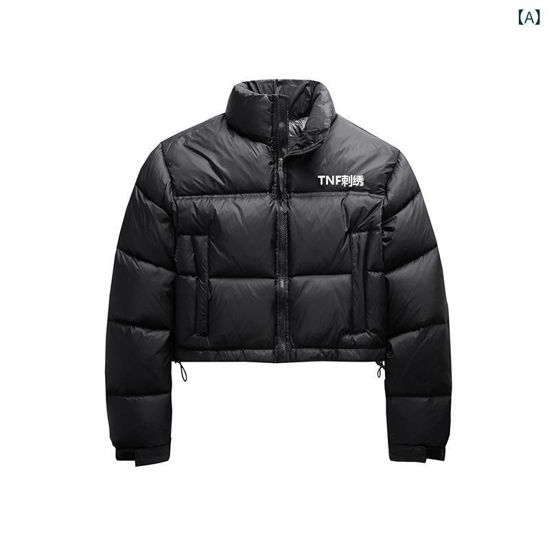 マイクロ ロゴ 刺繍 戸外 レジャー 高 蓬 色 保温 防風 ショート タイプの 明るい 立 襟 ダウン ジャケット 女性 タイプ