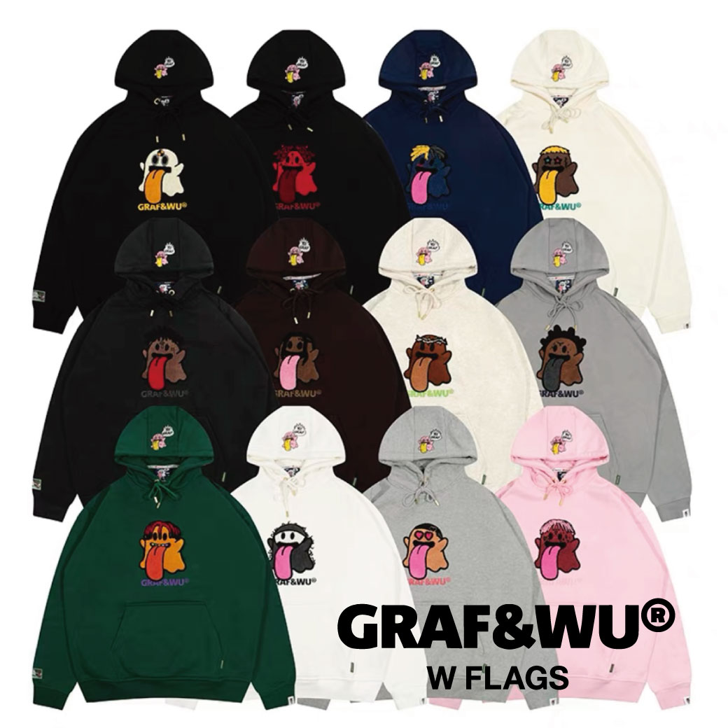 GRAF&WU グラフアンドウー パーカーおばけ フロントサガラ刺繍 ワッペン オーバーサイズ 長袖 韓国ブランド 韓国ファッション 中国ブランド 中国ファッション トップス ユニセックス メンズ レディース ストリート (graf-037)