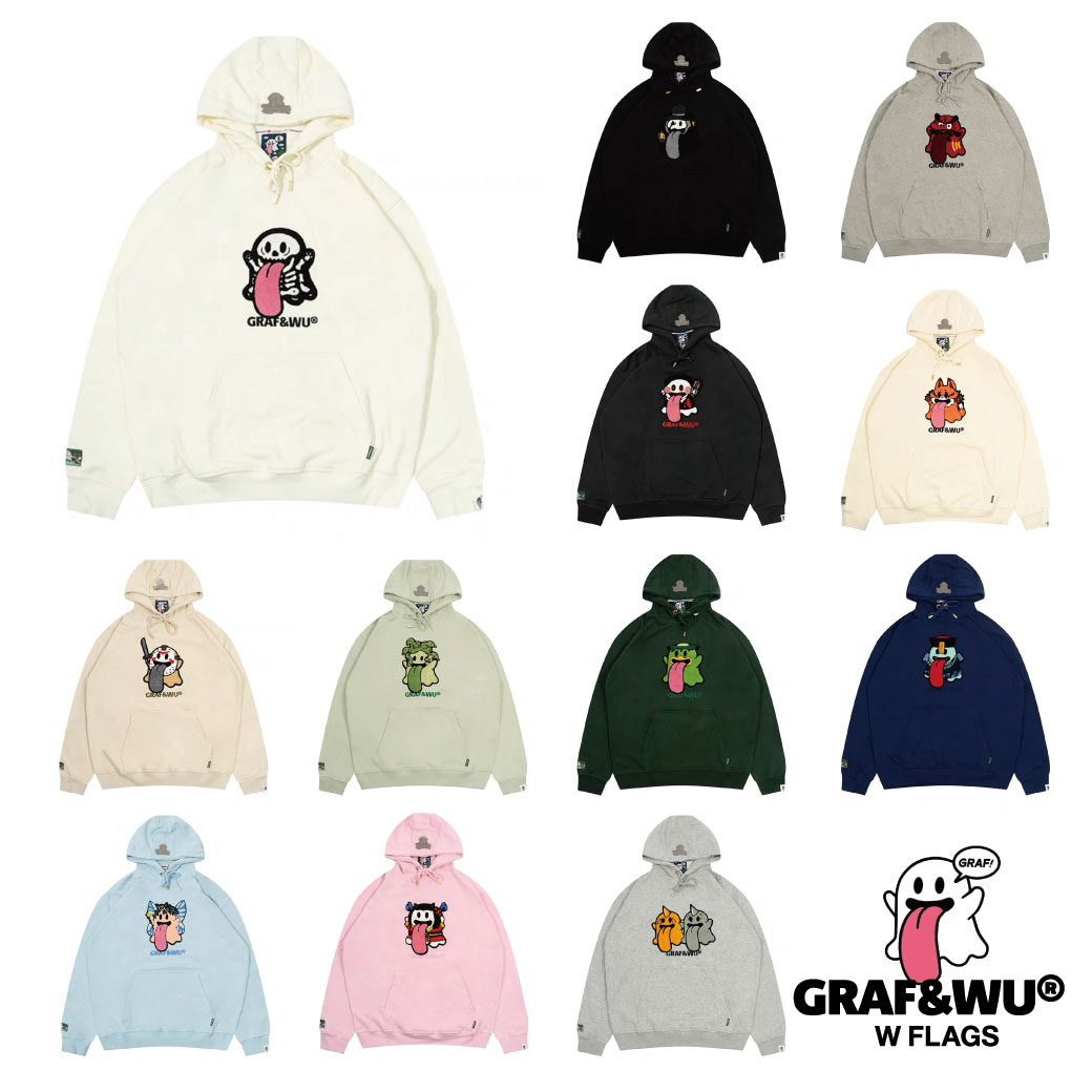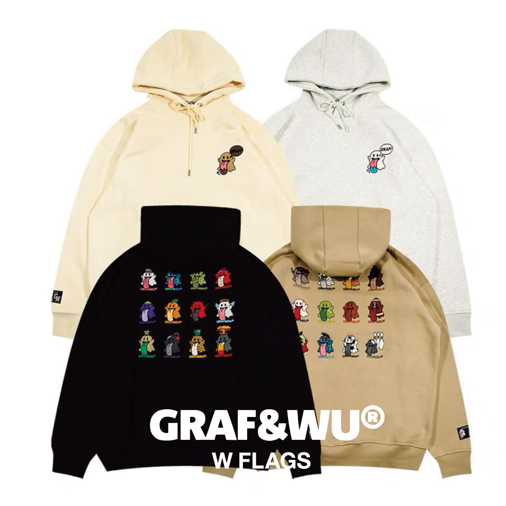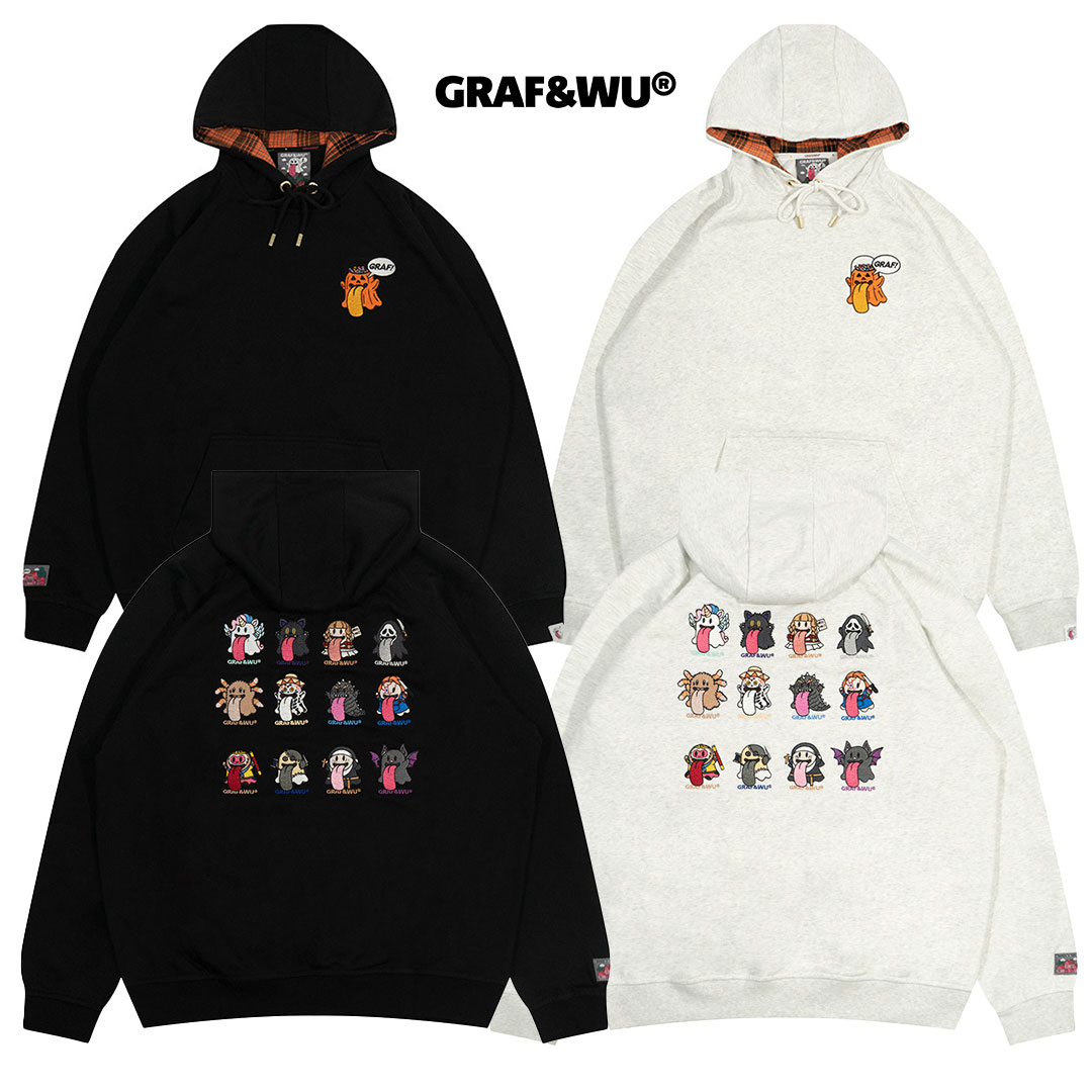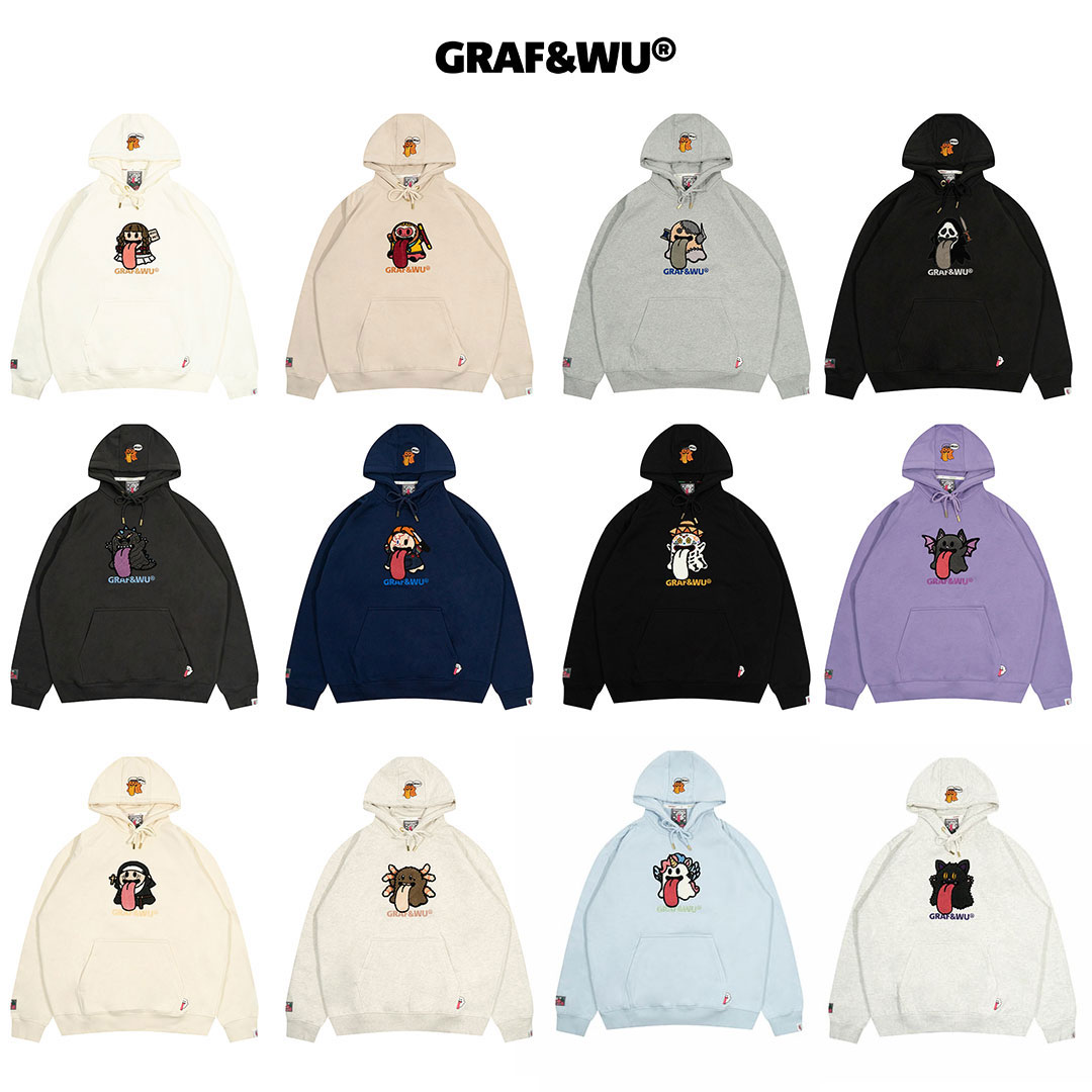 GRAF&WU グラフアンドウー パーカー 長袖 妖怪バージョン おばけ 刺繍 ワッペン オーバーサイズ 韓国ブランド 中国ブランド 中国ファッション トップス ユニセックス メンズ レディース ストリート (graf-050)