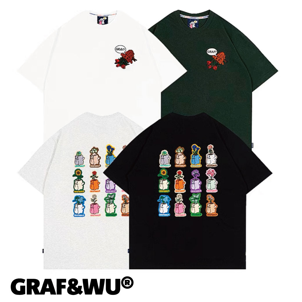 GRAF&WU グラフアンドウー 刺繍 Tシャツ グラフウー ロゴキャラクター オーバーサイズ 韓国ブランド 韓国ファッション 中国ブランド 中国ファッション トップス ユニセックス メンズ レディース ストリート (graf-064)
