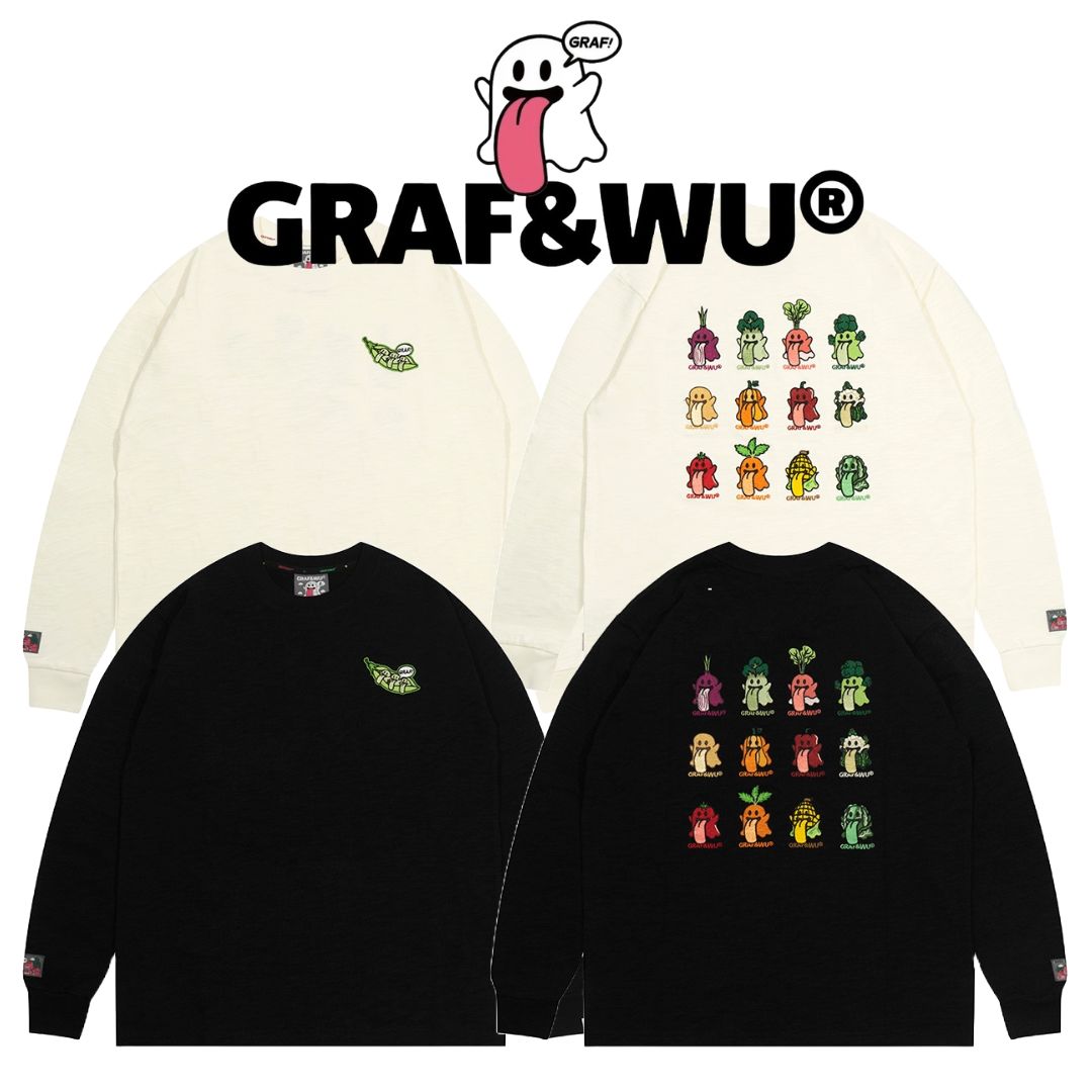 GRAF&WU グラフアンドウー ロゴキャラクター ロンT 長袖Tシャツ おばけ オーバーサイズ 韓国ブランド 韓国ファッション 中国ブランド 中国ファッション トップス ユニセックス メンズ レディース ストリート グラフウー (graf-057)