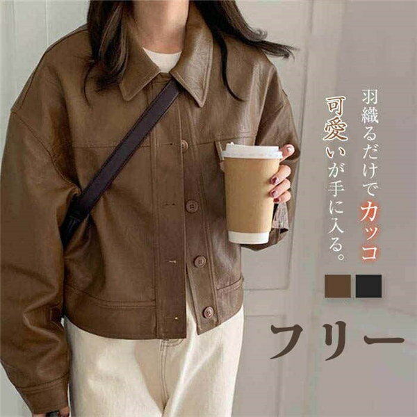 PU フェイクレザート ジャケット スプリングコート 革ジャン アウター レディース コート 春アウター カジュアル ジャケット 着やせ 防風 シンプル 高品質 春秋 お洒落 コーヒー ブラックグローリーパーク