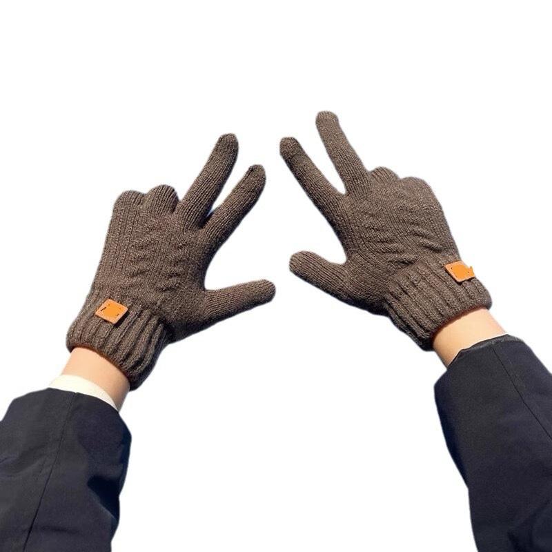手袋 秋冬 男女兼用 ニット グローブ 厚手 無地 保温 防寒 裏起毛 暖かい スマホ対応 運転 バイク 自転車 深カーキ ブラック ベージュ コーヒー グレー イエロー ライトグレー