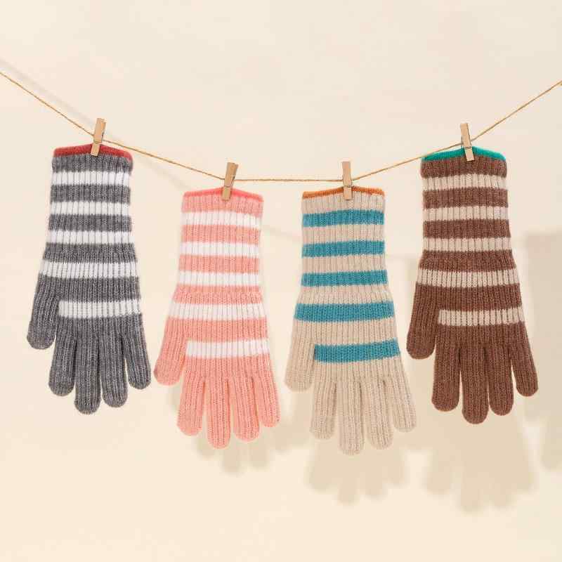 ・商品カテゴリ: 手袋・機能: タッチパネル対応、防寒・種類: 5本指手袋・色: ピンク、ブラック、レッド、グレー、コーヒー、ブルー、ベージュ・サイズ: フリーサイズ・素材: アクリル・素材構成: アクリル81~95%・柄: 横ストライプ・スタイル: シンプル