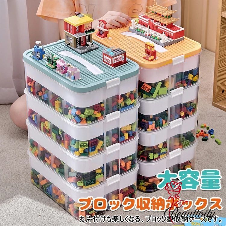ブロック収納ボックス 収納 ケース おもちゃ箱 おもちゃ収納 子供用 ブロック 積み重ね 多機能整理収納ボックス キャップはブロックを組み立てるこ かたづけ 収納ボックス 収納ケース 仕切り 蓋付き キッズ 大容量