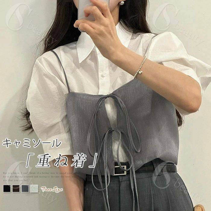 【コスパ最高】キャミソール 重ね着 レディース 夏 シースルー 透け感 レイヤード ショート丈 無地 オールシーズン 春夏 秋冬 普段着 デイリー ノースリーブ 着回し お出かけ コーデ 韓国風 可愛い カジュアル シンプル オフィス トップス チュニック