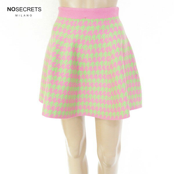 80%OFF 新品 ノーシークレッツ NO SECRETS スカート 40 ESK747 Mサイズ ピンク グリーン レディース ニットスカート フレアスカート 千鳥格子柄