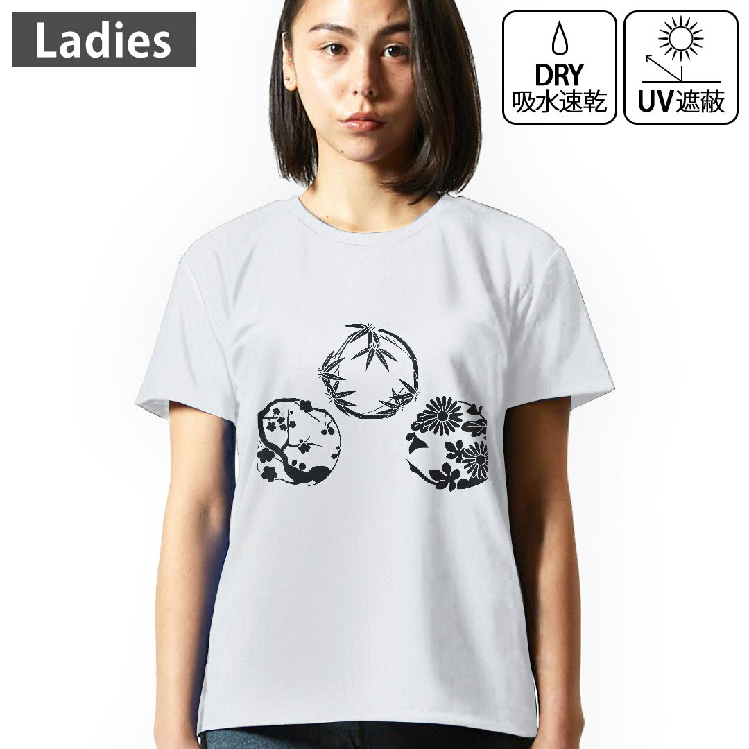 レディース ドライTシャツ ホワイト 半袖 4.1オンス ジム トレーニング スポーツ 運動会 ドライアスレチック UVカット 紫外線遮蔽 吸水速乾 デザイン Tshirt M L 和柄 和風 花 014441