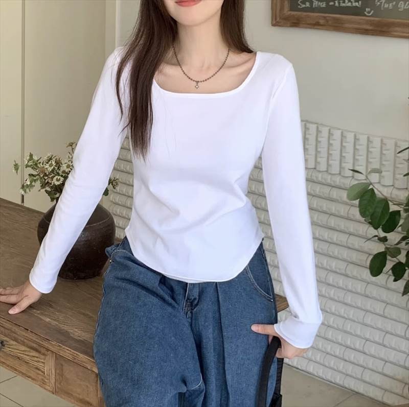 レディース トップス ロンT カットソー スクエアネック ラウンドヘム タイト スリム カラバリ豊富 サイズ豊富 大きいサイズ M L XL 2XL 3XL 4XL スタイルアップ モテコーデ かわいい 大人可愛い きれいめ シンプル カジュアル おしゃれ 送料無料 個性的 トップス 無地 春 秋
