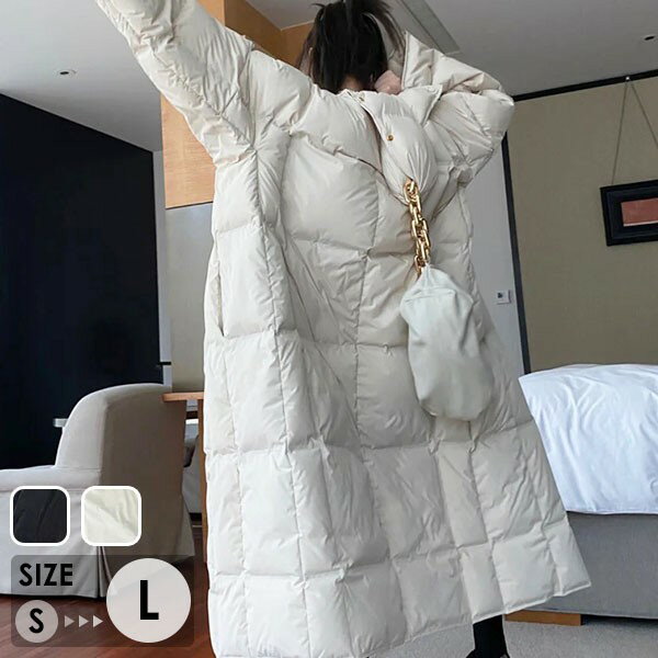 ダウンコート 90%ダウン ベンチコート ロングダウンコート 超ロング 暖かい レディース 黒 ベージュ スタンドカラー ロング丈 フードなし ダブルファスナー アウター 柔らかい 防寒性 冬服 防寒着 あったか ブラック オフホワイト S M L dd315n1n1t2