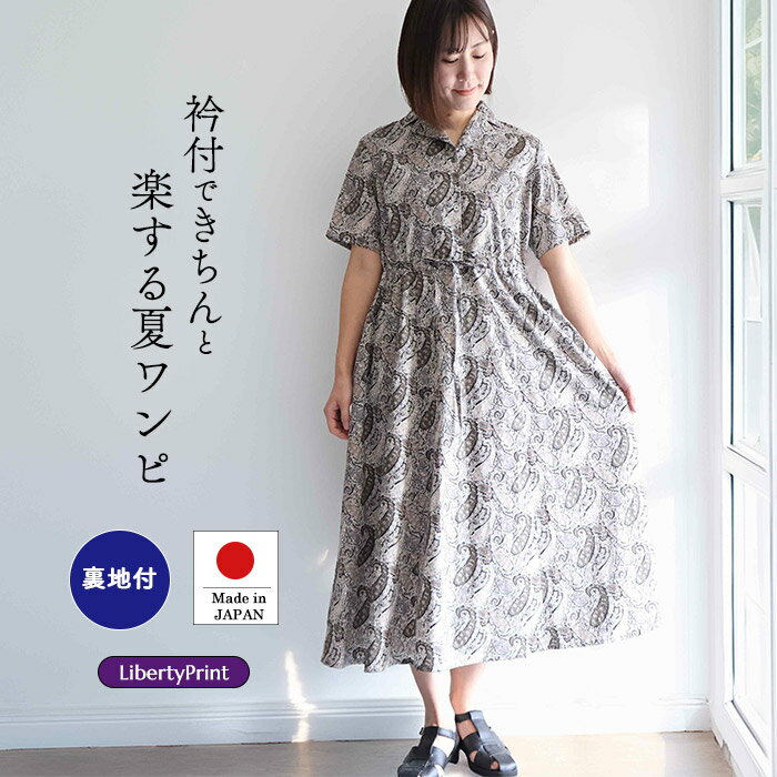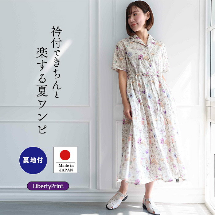 リバティ 半袖ワンピース テイラード衿 <レスト> アンティーク リゾートワンピ 楽 ゆったり 着やせ 大人ワンピ リバティプリント 国産