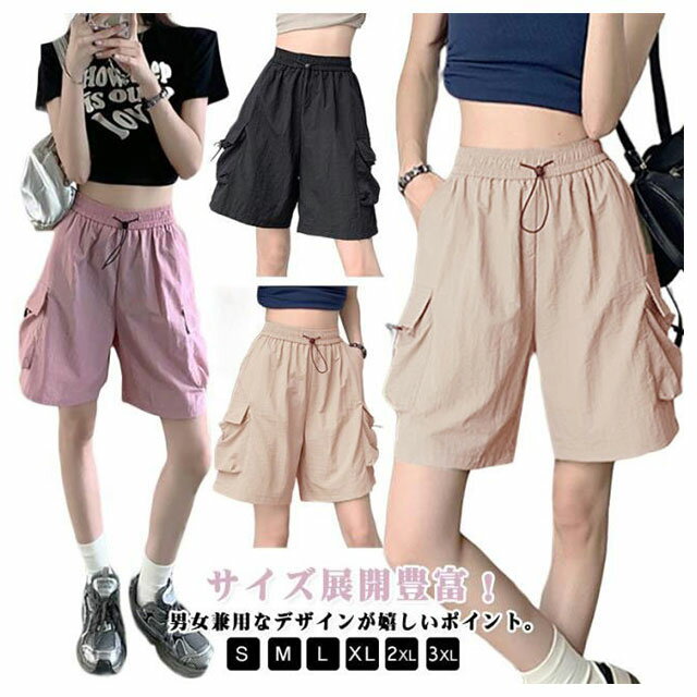 ハンサムなボーイフレンドライクショート丈カーゴパンツが登場しました。サイズ展開豊富!男女兼用なデザインが嬉しいポイント。ペアリングスタイルが楽しめます。シンプルデザインで、Tシャツと合わせるだけでカッコイイ。ワイドシルエットなので、気になる太ももをしっかりカバーしてくれます!カーゴポケットは小物入れ便利な上、スタイリッシュをワンランクアップし、女の子格好いい。シンプルなトップスと合わせるだけでお洒落決まり! サイズ S M L XL 2XL 3XL サイズについての説明 サイズ:【S】ヒップ106cm ズボン丈49cm ウェスト58-66cm おすすめ体重46kg以下【M】ヒップ110cm ズボン丈50cm ウェスト61-69cm おすすめ体重46.5-52.5kg【L】ヒップ114cm ズボン丈51cm ウェスト64-72cm おすすめ体重53-59.5kg【XL】ヒップ118cm ズボン丈52cm ウェスト67-75cm おすすめ体重60-66.5kg【2XL】ヒップ122cm ズボン丈53cm ウェスト70-78cm おすすめ体重67-73kg【3XL】ヒップ126cm ズボン丈54cm ウェスト73-81cm おすすめ体重73.5-80kg※サイズ表記は参考値となります。若干の個体差が生じる場合がございます。予めご了承ください。 素材 ポリエステル 色 ブラック ピンク ベージュ 備考 ●サイズ詳細等の測り方はスタッフ間で統一、徹底はしておりますが、実寸は商品によって若干の誤差(1cm〜3cm )がある場合がございますので、予めご了承ください。 ●商品の色は、撮影時の光や、お客様のモニターの色具合などにより、実際の商品と異なる場合がございます。あらかじめ、ご了承ください。 ●製品によっては、生地の特性上、洗濯時に縮む場合がございますので洗濯時はご注意下さいませ。 ▼色味の強い製品によっては他の衣類などに色移りする場合もございますので、速やかに(脱水、乾燥等)するようにお願いいたします。 ▼生地によっては摩擦や汗、雨などで濡れた時は、他の製品に移染する恐れがございますので、着用の際はご注意下さい。 ▼生地の特性上、やや匂いが強く感じられるものもございます。数日のご使用や陰干しなどで気になる匂いはほとんど感じられなくなります。
