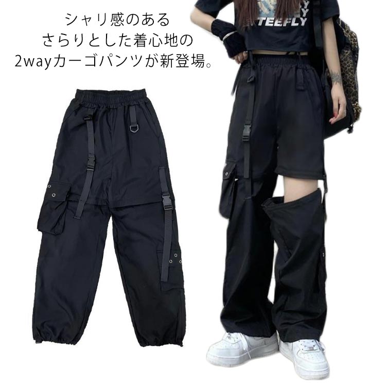 ロングパンツ カーゴパンツ サイドポケット ゆったり ストリート系 ダンスウェア レディース メンズ 2way ワイドパンツ 渋谷系 大きいサイズ ヒップホップ 男女兼用 送料無料