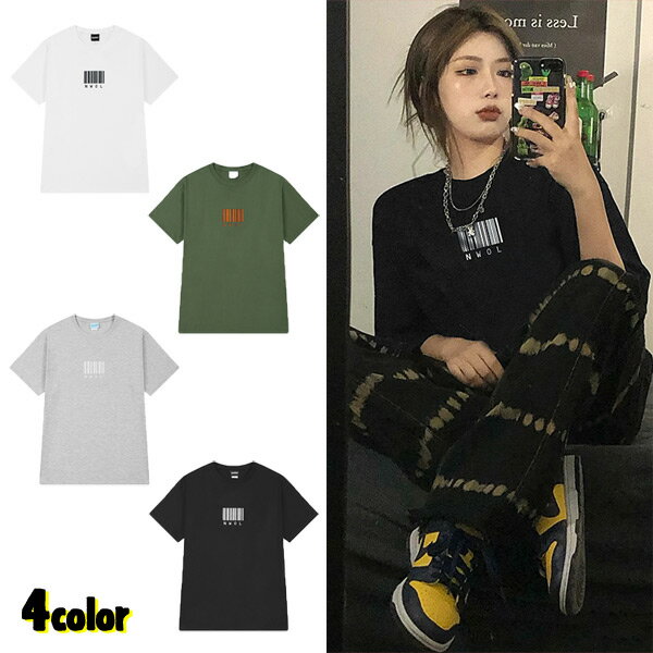 【送料無料】 Tシャツ バーコードプリント ビッグシルエットT ロゴ プリント 半袖T ダンス 衣装 ヒップホップ 韓国ファッション 大きいサイズ 個性的 グラフィック Tシャツ トップス