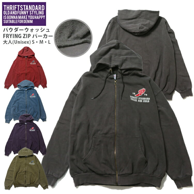 【THRIFTSTANDARD 12-12】パウダーウォッシュFRYING ZIPパーカーパーカー スウェット トレーナー メンズ レディース ユニセックス 長袖 ヴィンテージ 古着風 プリント ロゴ カレッジロゴ ファスナー アメカジ アウトドア 7bridge 130 140 150 春 秋 冬 ペア ロンT