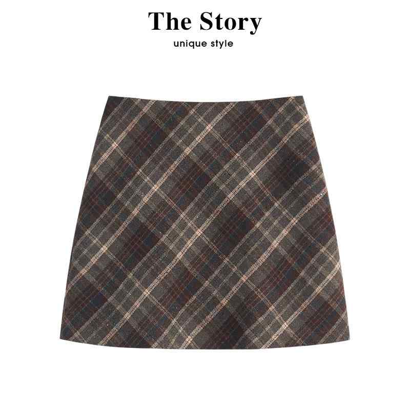 スカート レディース ボトムス ハイウエスト スリム a ライン 女性 秋 高級感 チェック柄 パッケージ ヒップ