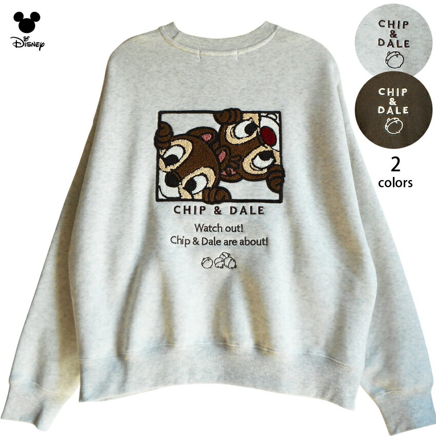 送料無料 ディズニー トレーナー チップとデール 刺繍 相良刺繍 レディース メンズ スウェット 裏起毛 チップ&デール どんぐり disney 男女 バックプリント ペアルック もこもこ ディズニーランド ワイド ドルマン おしゃれ 大人 かわいい 防寒 TDL グレー ブラウン