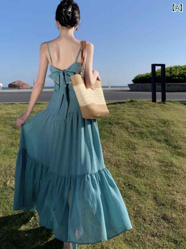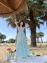 ワンピース 大人 レディース ドーパミン ミント グリーン ホルターネック スリング ガーゼ ドレス スーパー フェアリー バック ボウ シーサイド ホリデー ビーチ ロング スカート