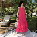 ワンピース レディース 大人 リゾート ローズレッド ノースリーブホルター ネック ドレス 女性 夏 プリーツ パッチワーク 海辺 ホリデー ビーチ ドレス